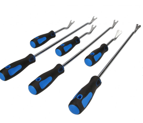 Der BRILLIANT TOOLS Lösewerkzeug-Satz für Verkleidungsclips BT511045 ist hervorragend zur schnellen und leichten Demontage von Innenverkleidungen geeignet. Durch die 3 im Satz enthaltenen Größen von 4, 8 und 10 mm ist er universell einsetzbar. Die Hebel haben eine Länge von 23,5 cm und 49,5 cm. Der 2-Komponentengriff bietet sehr guten Halt, somit ist auch das Lösen weit entfernter Clips kein Problem.