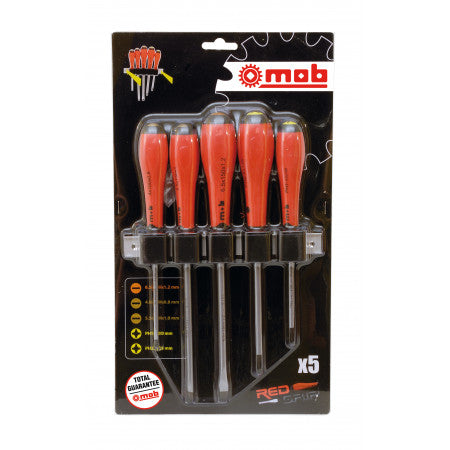 Auf praktischer Klemmleiste. Kraft - Präzision - Schnelligkeit. ERGONOMIE: 2-Komponenten-Griff aus Neopren und Polypropylen. Für einen bequemen, optimalen Halt und gleichzeitig eine hohe Belastbarkeit des Schraubendrehers. Hohes Drehmoment durch die Sechskant-Form des Griffs. Die sechs Seiten führen die Finger ganz automatisch während einer kraftvollen Verwendung. QUALITÄT: Unlösbare Verbindung zwischen Griff und Klinge. SCHNELLIGKEIT: Verjüngung des Körpers für ein schnelles Schrauben. Rollt nicht beim Ablegen. KUGELKOPF: Kopf angepasst an den Druck. Farbmarkierung an der unteren Seite des Griffs für ein schnelles Erkennen des gewünschten Schraubendrehers. PRAKTISCH: Sichtbarkeit durch rote Farbe. Neopren: Leicht zu reinigen. Geschmiedeter und gehärteter Chrom-Vanadium-Stahl. FINISH: Verchromt und geschliffen. Phosphatierte Spitze. QUALITATIV HOCHWERTIGER STAHL FÜR JEDE SPITZE: Schlitz, Philips und Pozidriv: Chrom-Vanadium-Legierung. Torx: Mangan-Silizium